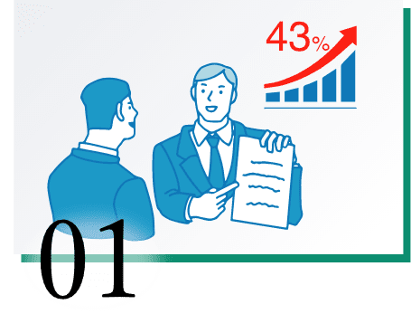 新しい包装資材の提案、新製品開発の提案で約43%の売上上昇