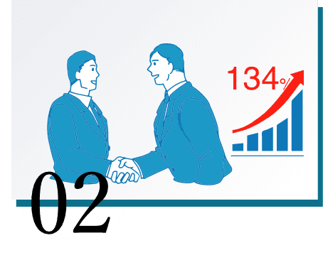 お客様が販売の販路を伸ばし、売上を134%の売上上昇